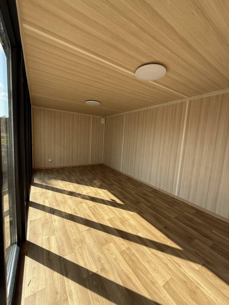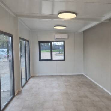 Modulinis ofisas 18 m² – su pilna apdaila, elektros instaliacija, langais, durimis, transportu ir montavimu – apie 7000 € + PVM