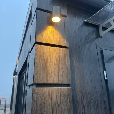 – Išorės apdaila: „classic” skarda, skardos kasetės, medžio dailylentės, aliuminio kompozitas