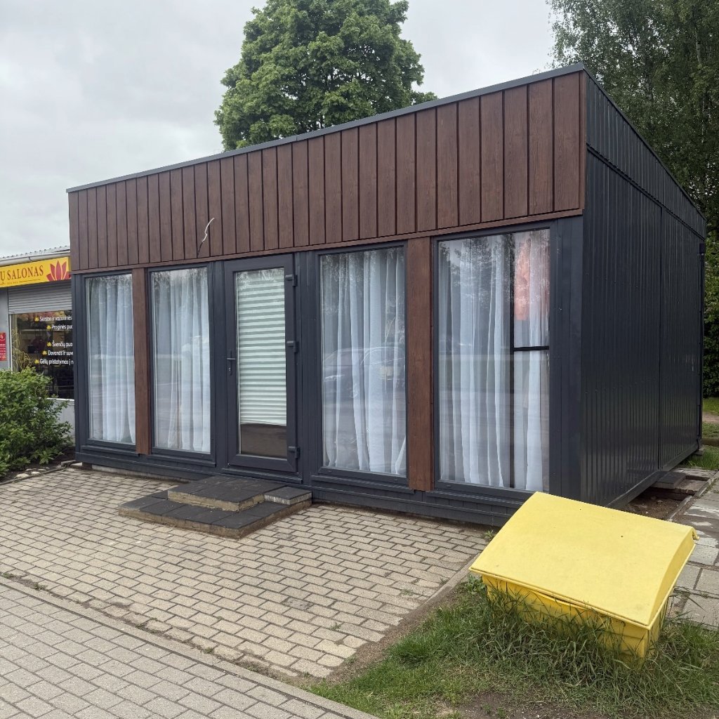 Modulinis ofisas 18 m² – su pilna apdaila, elektros instaliacija, langais, durimis, transportu ir montavimu – apie 7000 € + PVM